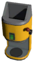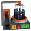Takes ingots in the left and spits product out of the right. Power button toggles machine power state. Lever will eject materials inside if machine is powered. Arrow buttons select recipe, push the square button in between to craft. Magnifying glass button below the craft button opens a search interface for easier recipe selection.