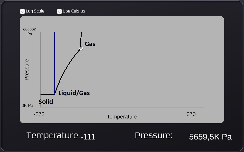 1) The Stationpedia says that all solids have 6.3kPa "Vapor Pressure". But a crude experiment showed that slowly pumping in a gas (CO2) into a freezing cold room (8 grids of O2 at -149°C) did not result in a significant change in pressure (when accounting for the small increase in temperature caused by adding a warmer gas). The added gas (CO2) did not show up on a Handheld Tablet (nor a Gas Sensor or Pipe Analyzer with its own separate pipe), the only way to spot the presence of the invisible "gas" was by the small amount of ice that formed inside the passive vent used to insert it into the room. After a while some ice (CO2) fell to the floor, without resulting in any changes of pressure or temperature. Doing the reverse, placing ice into a freezing cold room, will not sublimate any of that ice into gas. Based on this, it seems that un-frozen "gas" have no actual "vapor pressure", it will just invisibly accumulate until there is enough of it to form a lump of ice.