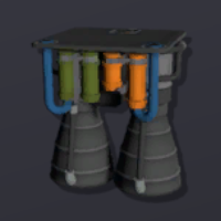 "Inefficient but very powerful, the Pressure Fed Gas Engine moves gas from each of its two inputs based on the pressure of the input pipes. Control the mixing ratio of fuel by tweaking the input pressures to a target 2:1 mix of Liquid Volatiles to Liquid Oxygen gas. Chilling propellant gasses or using Liquid Nitrous Oxide as an oxidizer will result in even higher thrust output."