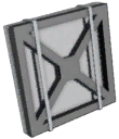 Takes ingots in the left and spits product out of the right. Power button toggles machine power state. Lever will eject materials inside if machine is powered. Arrow buttons select recipe, push the square button in between to craft. Magnifying glass button below the craft button opens a search interface for easier recipe selection.